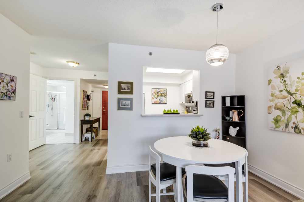 Welcome to Hearthstone by the Lake where residents can enjoy the amenities of retirement living and still have the benefits of home ownership. This well-designed one bedroom (with a large walk-in closet) and den west facing unit has had numerous upgrades including flooring and kitchen with backsplash. Walk a few steps to Lake Ontario, enjoy delicious meals in the onsite dining room, participate in the numerous activities like billiards, exercise programs, aquafit (in the indoor pool) provided by your Club Fee, or just stroll the beautifully maintained gardens. Each unit at Hearthstone has a full kitchen, in-suite laundry, one underground parking spot, and a locker. Your Club Fee provides onsite emergency nursing through the wellness centre, an emergency call system, a dining room credit, some housekeeping, onsite handyman, the list goes on.